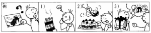 例: あの 黒い シャツを 着て いる 人は (____) ですか。 Người đang mặc áo sơ mi đen kia là (____)? ……ミラーさんです。 Là anh Miller → Đáp án: だれ (ai) 1) ここに あった 新聞は (____) ですか。 Tờ báo ở đây lúc nãy(____)? ……テレビの 上に あります。 Ở trên tivi. → Đáp án: どこ (ở đâu) 2) マリアさんが 作った ケーキは (____) でしたか。 Cái bánh chị Maria làm(____)? ……とても おいしかったです。 Rất là ngon. → Đáp án: どう (như thế nào) 3) いちばん 新しい パソコンは (____) ですか。 Cái máy tính mới nhất là(____)? ……これです。 Là cái này. → Đáp án: どれ (cái nào)Phần 3: Nhìn tranh và hoàn thành câu hỏi về đồ vật bên dưới