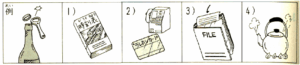 4)(____) カップラーメンは 食べたら、カップを 捨てます。
