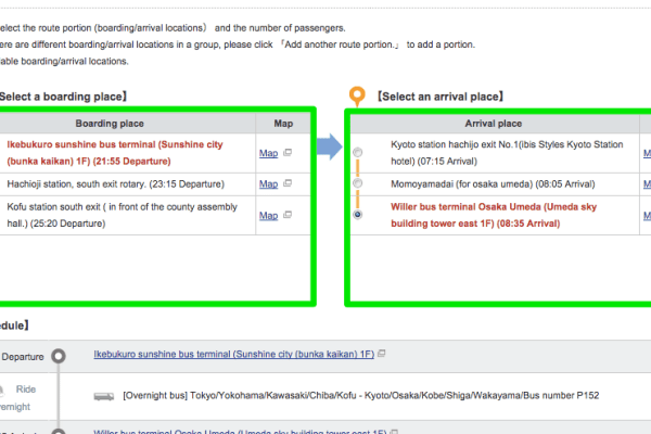 ① Di chuyển từ đâu đến đâu? (Ví dụ trường hợp đi từ Tokyo đến Osaka)