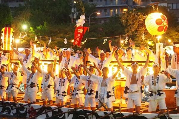 Điểm sáng của lễ hội là đám rước bằng thuyền ban đêm, chở theo mikoshi – đền thờ di động – trên sông trong những con thuyền được chiếu sáng, một số còn đốt lửa. Bạn có thể thoải mái mặc yukata (trang phục truyền thống mùa hè), geta (guốc truyền thống) và cùng tham gia.