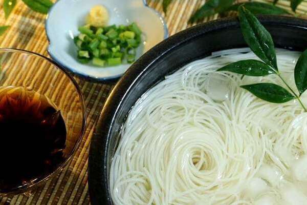 Món ăn đặc biệt trong ngày lễ Thất tịch Nhật Bản này là mì soumen lạnh sợi nhỏ (đường kính khoảng 1,3mm).